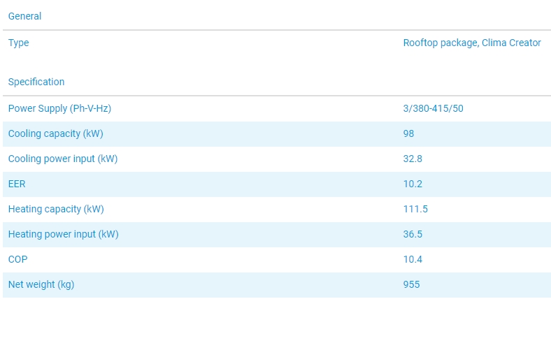 Dải công suất làm lạnh lớn. Thiết kế linh hoạt, vỏ máy chống ăn mòn phù hợp với đặt ngoài trời. Dễ dàng lắp đặt và bảo dưỡng. Nhiều lựa chọn phụ kiện.