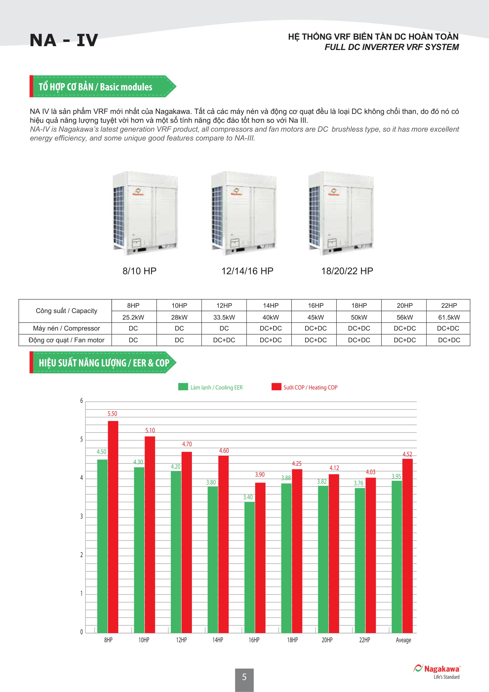 Điều hòa thương mại Nagakawa NA -IV dòng sản phẩm tiết kiệm năng lượng, không ngừng nỗ lực nghiên cứu phát triển công nghệ để trở thành hãng sản xuất đáp ứng công nghệ hàm lượng carbon thấp, thân thiện với môi trường. Động cơ DC của điều hòa thương mại Nagakawa NA -IV hiệu suất cao từ các thương hiệu nổi tiếng Ống đồng có rãnh xoắn bên trong có độ khuếch tán cao, tăng cường sự xáo trộn môi chất lạnh để tăng hiệu suất trao đổi nhiệt. Nhiệt độ chế độ làm lạnh lên đến 54 độ C thích hợp cho vùng nóng, và nhiệt độ hoạt động chiều sưởi xuống tới - 20 độ C. Vào mùa đông, hệ thống điều hòa thương mại Nagakawa NA -IV có thể sinh nhiệt. Độ ồn với 7 cải tiến làm giảm tiếng ồn: Động cơ DC không chổi than. Hoạt động chế độ im lặng và kiểm soát vào ban đêm. Máy nén có độ ồn thấp. Điều khiển dạng sóng hình sin 180 độ. Thiết kế ống dẫn luồng không khí. Khử độ rung của cánh quạt. Mạch giảm âm thanh . Chức năng điều khiển dàn nóng điều hòa thương mại Nagakawa NA -IV khi có một tín hiệu liên kết báo động cháy. Khi gặp tình huống khẩn cấp có thể dừng lại toàn bộ hệ thống AC