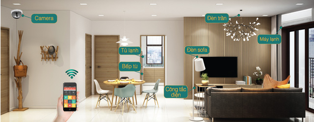 - Điều hòa, bình nóng lạnh và hàng loạt các thiết bị khác như tivi, tủ lạnh, quạt trần, đèn chùm,… đã sẵn sàng phục vụ bạn mỗi khi thức dậy, đi làm về hay điều khiển dễ dàng từ xa qua các thiết bị điện di động.
