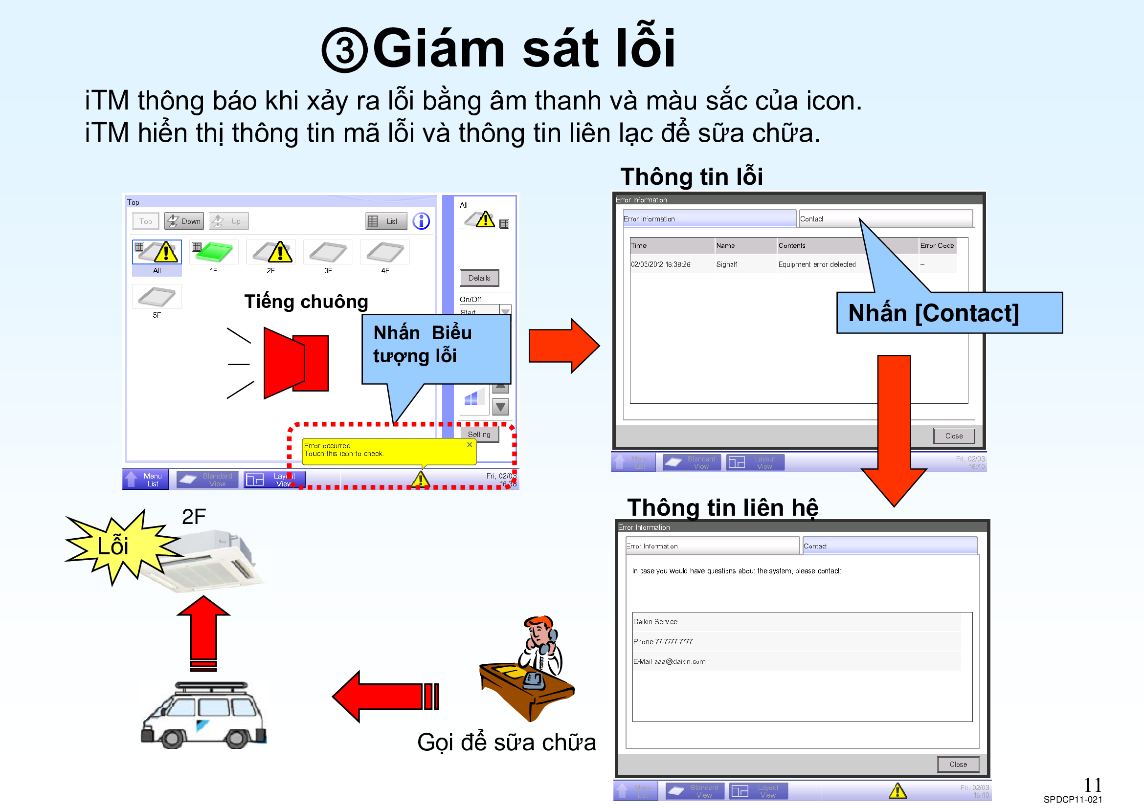 Giám sát trạng thái bật/tắt, sự bất thường của hệ thống, cảm biến
